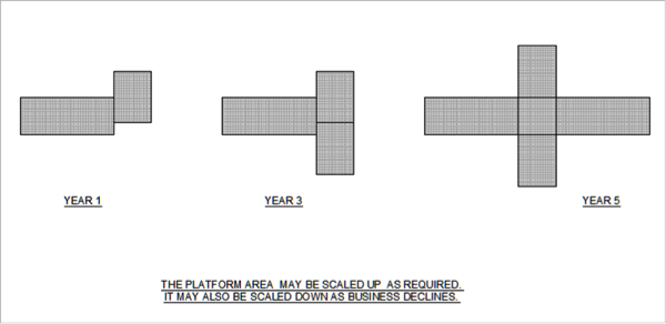 The ease to expand the platform in response to market demand for its services cannot be overstated. On land, this is not always possible. To buy and hold adjacent land in anticipation of future expansion is a costly option and in some countries not legally allowed as it is deemed as hoarding and hence morally unacceptable. To have the option to add more platforms, but only when the market justifies it, reduces business risk and cost of borrowing. The fact that some or all the modules of the platform may be detached and sold if necessary further reduces that risk.