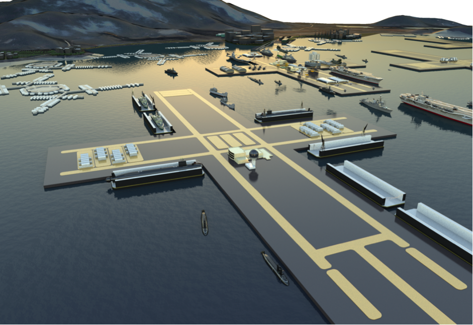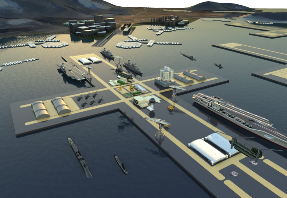 With the inception of a floating jetty, and the existence of floating docks, floating cranes and floating workshops, the pieces are in place to assemble a floating military complex (naval or otherwise). Today’s floating docks are large enough to dock the largest container ship and floating cranes are capable of lifting more than 5000 tons.